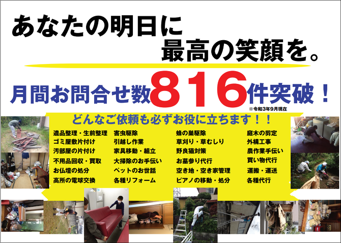 未熟な点、力不足な点がひょっとするとあるかもしれません。しかし、最後までお客様に喜んでいただけるよう誠心誠意ご対応させていただきます。ぜひみなさんの近くの町の便利屋さんとしてお助けマスター福岡店をよろしくお願いいたします。